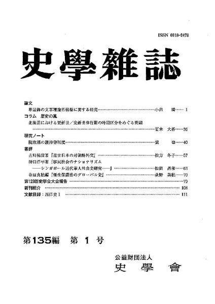 ※第1 編~第100 編の目次は、『史学雑誌総目録』(史学会編、山川出版社、1993 年)に掲載されています。